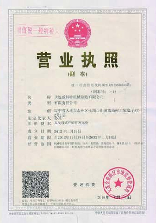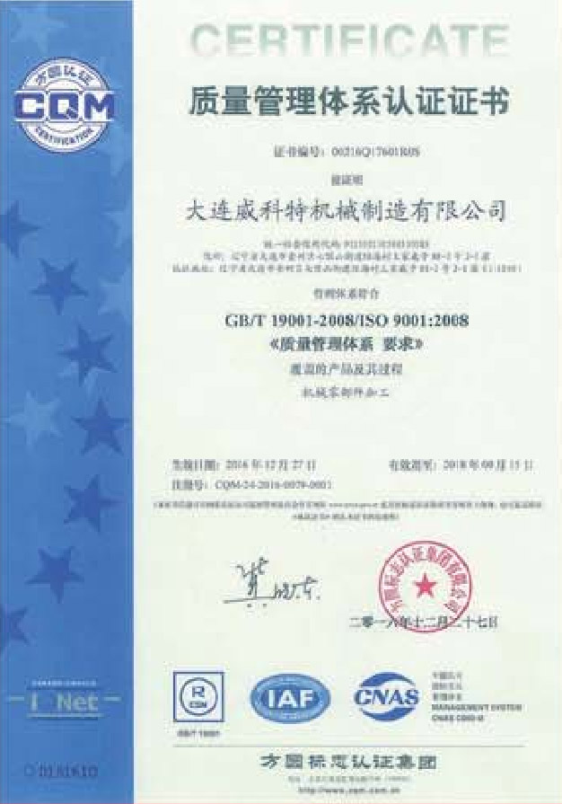 大連威科特成立于2003年,2012年搬遷至大連金州經(jīng)濟(jì)技術(shù)開發(fā)區(qū)。公司注冊(cè)資本2500萬(wàn)元,占地面積25000m2,辦公地點(diǎn)位于大連開發(fā)區(qū)遼河西路73號(hào)融通大廈。公司現(xiàn)擁有員工68人,中高級(jí)職稱人數(shù)15人,技工30人以上,公司已通過(guò)ISO9001:2015質(zhì)量管理體系認(rèn)證,擁有多項(xiàng)專利技術(shù),經(jīng)過(guò)多年的發(fā)展,逐漸形成了一支素質(zhì)過(guò)硬、制造經(jīng)驗(yàn)豐富的管理、技術(shù)和生產(chǎn)團(tuán)隊(duì),保證了公司的持續(xù)發(fā)展和創(chuàng)新能力。